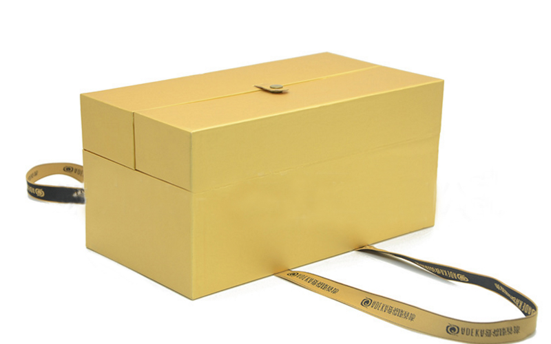 1.材質:盒子表面採(cǎi)用珠光金黃色特種紙彩色印刷,或者是盒子表面可以做一些文字燙金擊凸等工藝,裱1800G雙灰闆,黑内放EVA裱紫色綢(chóu)布,盒型爲開門盒,盒子局部結構零件有按扣和手提繩子.整款盒子都是手工細作