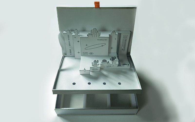 今年博霖就接到一款造型奇特的月餅盒,最初拿到客戶設計稿時還是一頭霧水 。月餅盒定制最主要的兩個内容就是結構跟内容兩部分,由於客戶對於結構完全不瞭解,全憑自己想象做的。做爲專業的包裝盒定制廠家業務員,在看到客戶設計後也是很迷糊,再跟客戶耐心的溝通瞭解其需求後主動爲其提供結構的設計。盒型主要分爲兩層,一層爲勳章展示層、一層爲月餅禮品放置層。其中勳章層還有立體賀卡,並且客戶要求兩層都會翻蓋的形式。爲此特意設計瞭上下兩層均爲翻蓋的雙層盒,将第一層盒子固定到皮殼上,使第一層做爲第二層的蓋第一層又有單獨的蓋。這樣就完美解決瞭所有問題 ,既是雙層盒又是雙層翻蓋盒。