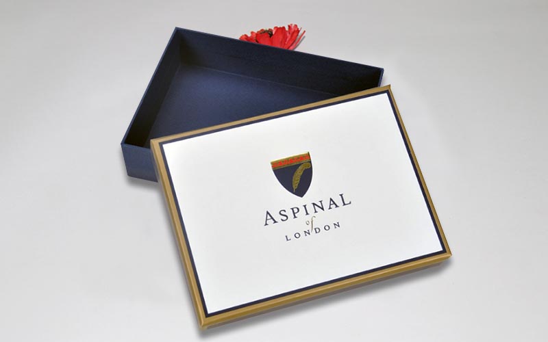 1.材質:盒子面紙用白色觸感特種紙,表面印刷燙金文字LOGO,裱1500G雙灰闆裏面的所有内襯都是藍色特種紙,上盒四邊印專金,整款盒子機械化制作。