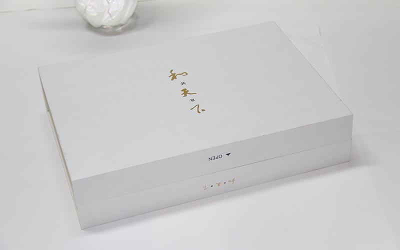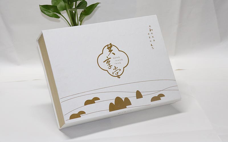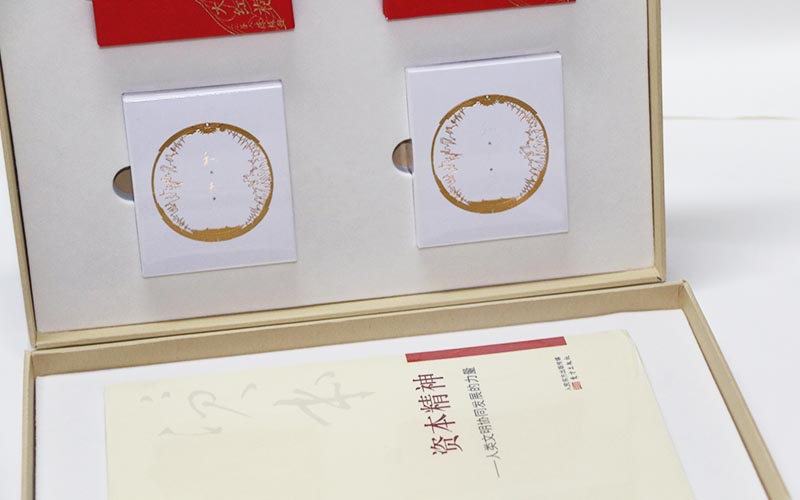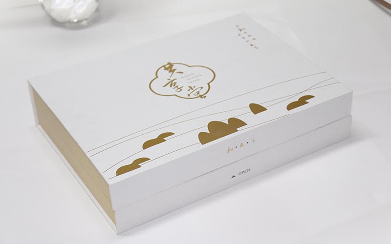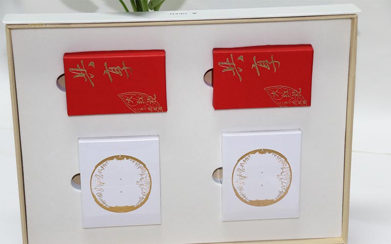 1.材質:盒子面紙用超白特種紙,盒子表面燙金文字,裱1500雙灰闆 ,盒子打開上下都可以放産品,盒子上下内托爲白色EVA更好固定産品,所有的産品都加上搜索膜,盒型爲翻蓋盒,整款盒子手工制作。