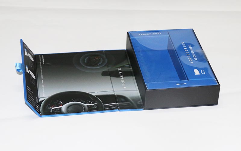 1.材質:盒子面紙用157G銅版紙單面彩色印刷,單面啞膜圖片文字UV,裱1300G雙灰闆,内盒材質一樣,内托用卡紙啤好粘好固定,放好産品上面放一層磨砂的PVC,盒型爲翻蓋盒